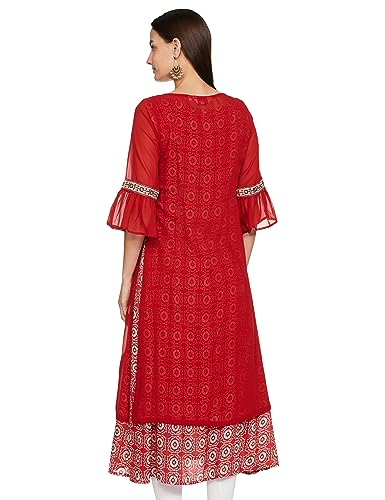 Janasya Women's Lavender Georgette Yoke Embroidered A-Line Kurta with Palazzo and Dupatta Set