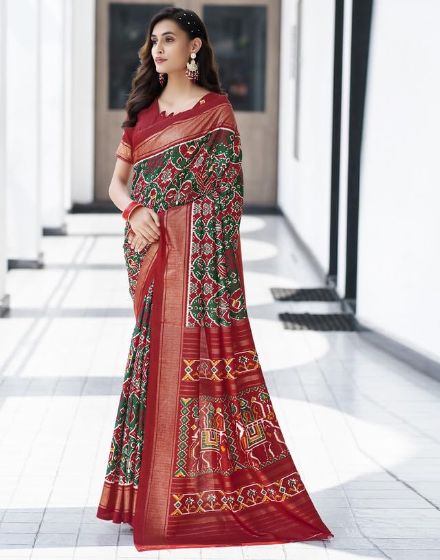 SIRIL Women's Cotton Printed Ready To Wear One Minute Saree With Unstitched Blouse Piece