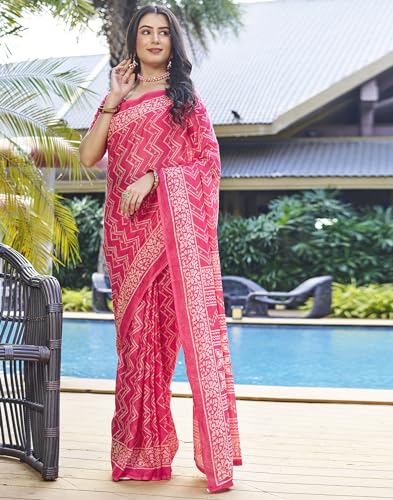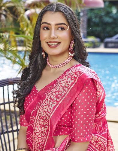 SIRIL Women's Viscose Blend Bandhani And Floral Printed Ready to Wear One Minute Saree With Unstitched Blouse Piece