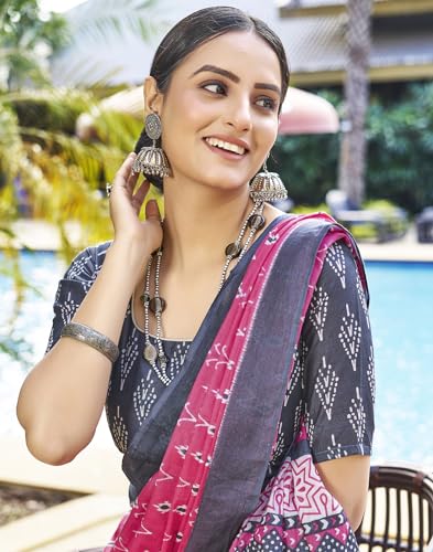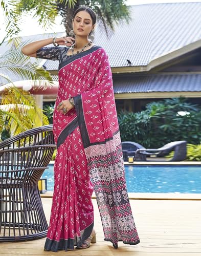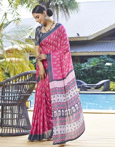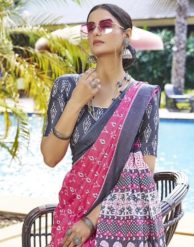 SIRIL Women's Dola Silk Foil Printed Saree With Unstitched Blouse Piece