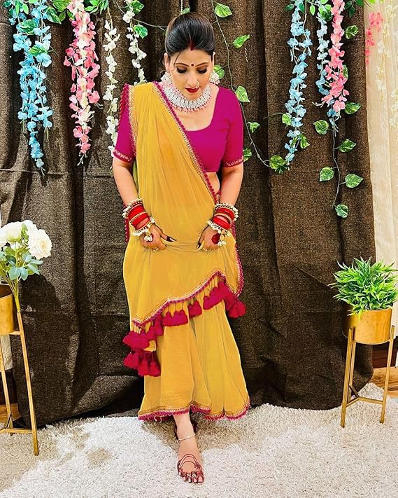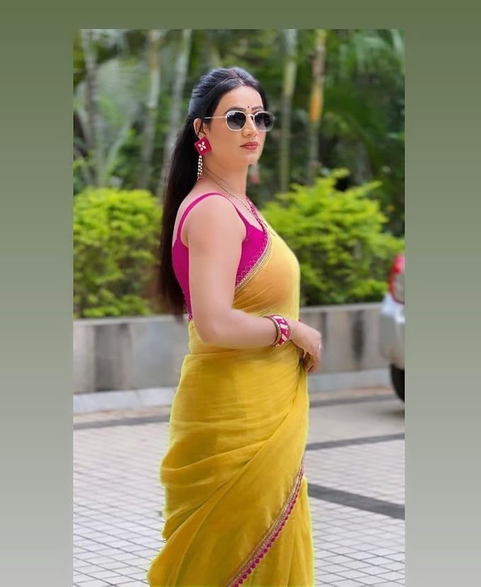 SIRIL Women's Georgette Embroidery Saree With Unstitched Blouse Piece