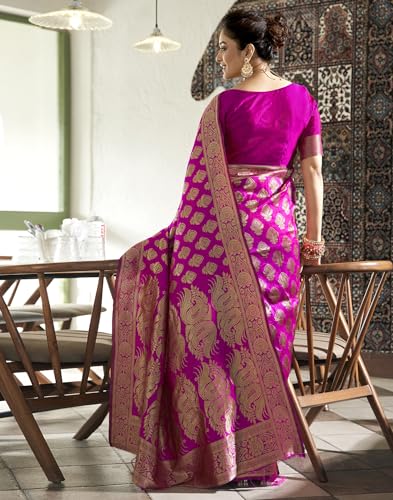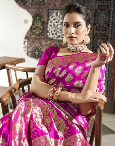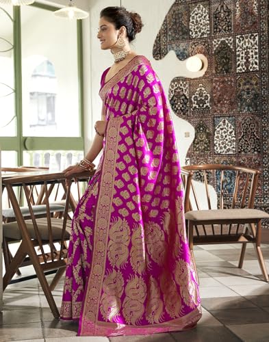 SIRIL Women's Cotton Silk Foil Printed Zari Stripe Bandhani Saree With Unstitched Blouse Piece