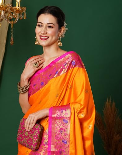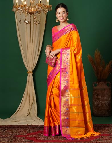 SIRIL Women's Art Silk Self Woven, Jacquard Border Saree With Unstitched Blouse Piece