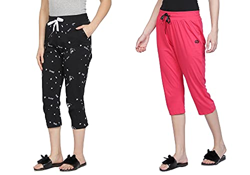 Fflirtygo Solid Capri’s for Women, Night Pyjamas for Women, Night Dress, Lounge Wear, 3/4 Pyjama,– Capri Combo Pack of 2Pcs for Ladies Cotton Night Wear