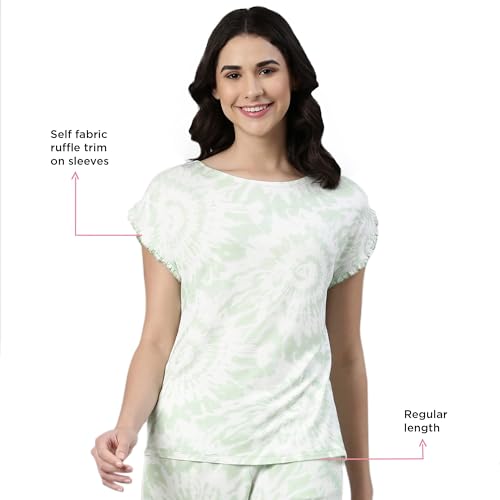 beebelle Women's Cotton Tie-Dye Printed Night Suit CoOrds Set of Top & Joggers 1149