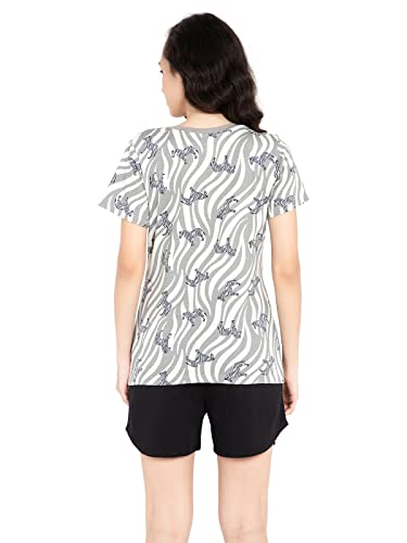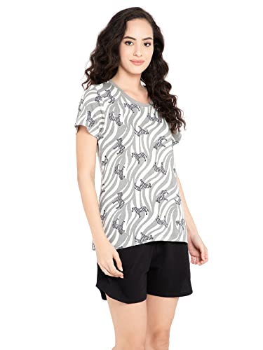Clovia Women's Cotton Ice Cream Printed Button Down Shirt & Pyjama Set