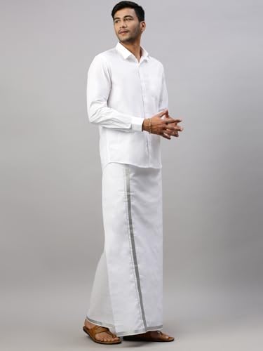 RAMRAJ COTTON Men Pure Cotton Single Layer Dhoti With Gold Jari Border