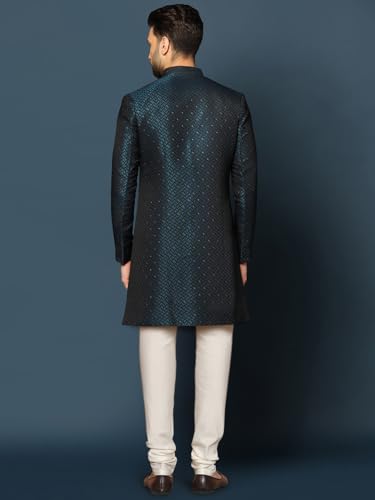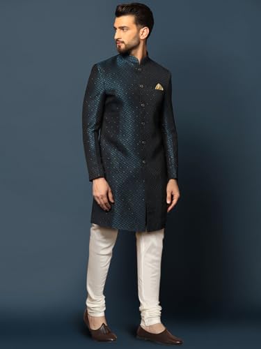 KISAH Men's Cotton Blend Full Sleeves Regular Fit Woven Design Maroon Kurta Indo-Western Sherwani Churidar Set
