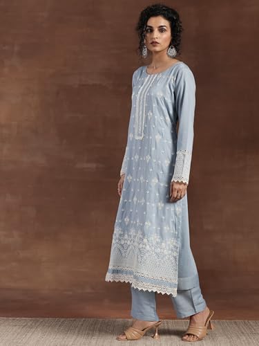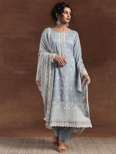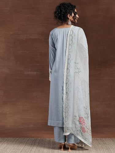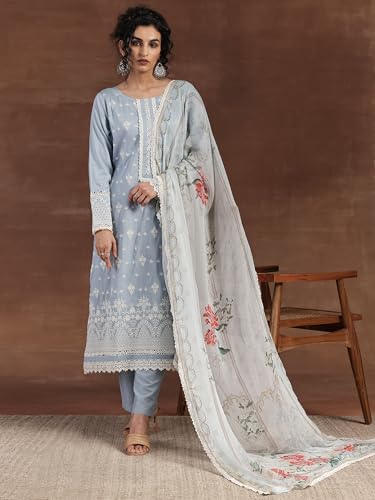 RAJMANDIRFABRICS Women's Cotton Embroidered Straight Kurta Pant With Dupatta Set