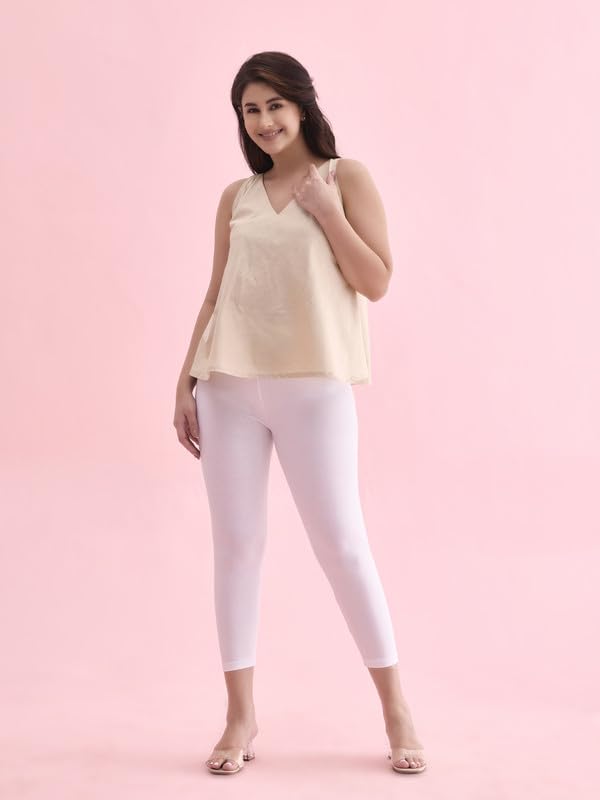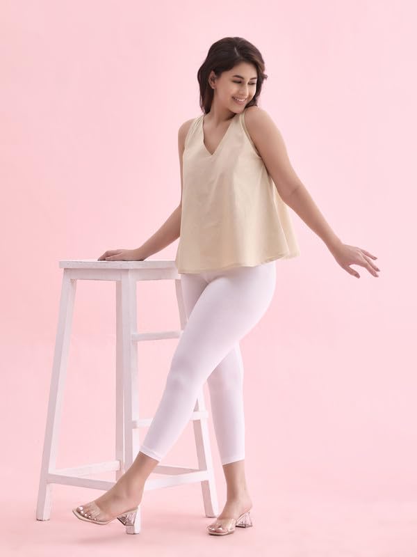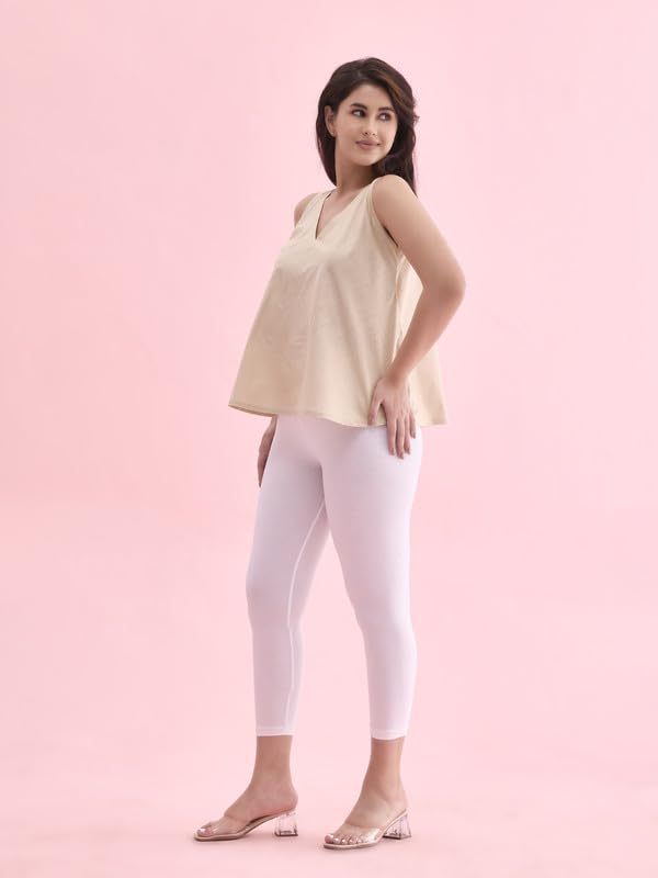 Lyra Women Solid Premium Cotton Ankle Length Leggings | Mid-Waist | Fashionwear